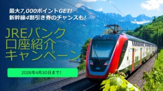 2025年10月1日~11月30日の期間で、通常分のJREバンク口座開設の5,900ポイントに1,100ポイント上乗せして、最大7,000ポイントの(JREポイント)が受け取れます。