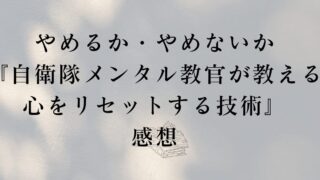 『自衛隊メンタル教官が教える 心をリセットする技術』を読んだ感想を書いていきます。著者は下園壮太です。 タイトルは「心をリセットする技術」とありますが、仕事を辞める・辞めない問題の考え方をメインに、離婚するかしないかなど、様々な応用について解説されています。